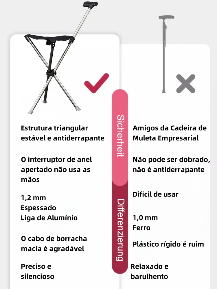 Proteção eficaz contra quedas na velhice – escolha este produto! Certificado pela TÜV e especialmente projetado para idosos. Sola de borracha antiderrapante + alumínio de alta resistência – leve e estável! Dura até 20 anos! Reembolso de 10x para defeitos