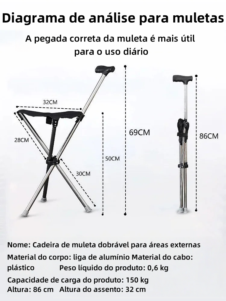 Cadeira de muleta dobrável para uso externo