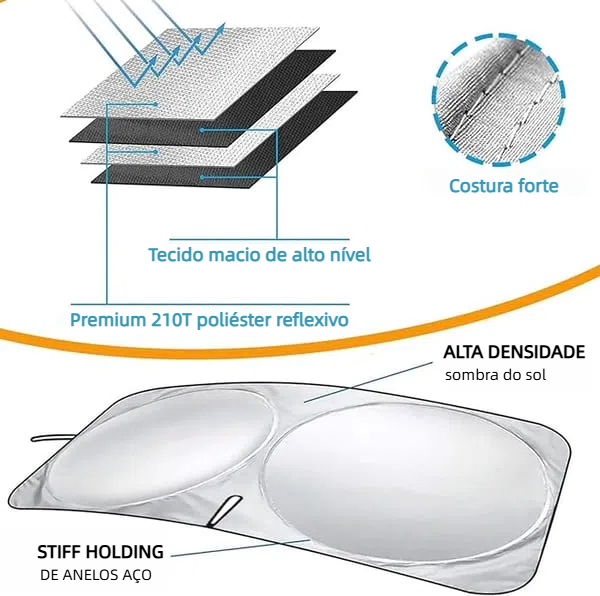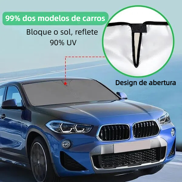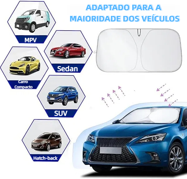 A forma atualizada do guarda-sol tradicional com um design trapezoidal que se encaixa perfeitamente no pára-brisa, abertura em forma de V, velcro compatível com espelhos para proteger contra os raios UV e dar-lhe efeitos de sombreamento inesperados