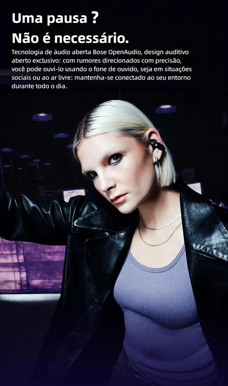 Vai o dia todo. Faça o que quer que seja. Com o áudio imersivo Bose, os fones de ouvido não só sentem e parecem bem, eles o aproximam da sua música.