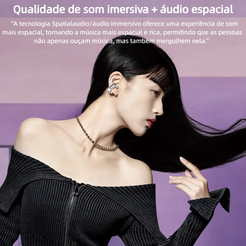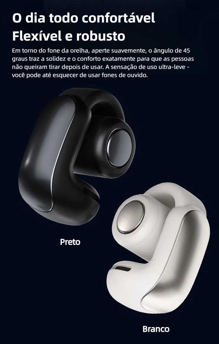 Uma combinação brilhante de design inovador, áudio incrível e conforto durante todo o dia. Seu ajuste semelhante à manguita deixa seus ouvidos totalmente abertos para que você ainda possa ouvir o mundo ao seu redor.