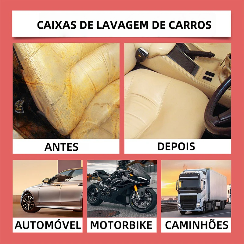 UTILIZAÇÃO POLIVALENTE: Perfeito para uma variedade de superfícies, incluindo estofos, couro, tapetes, pneus, painéis de instrumentos e até mesmo superfícies exteriores como para-choques e rodas.