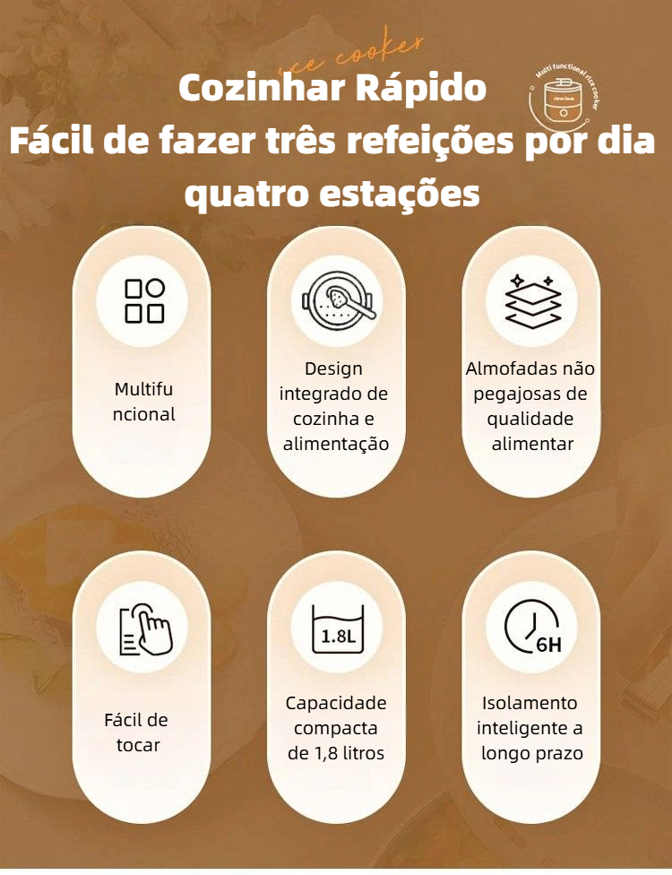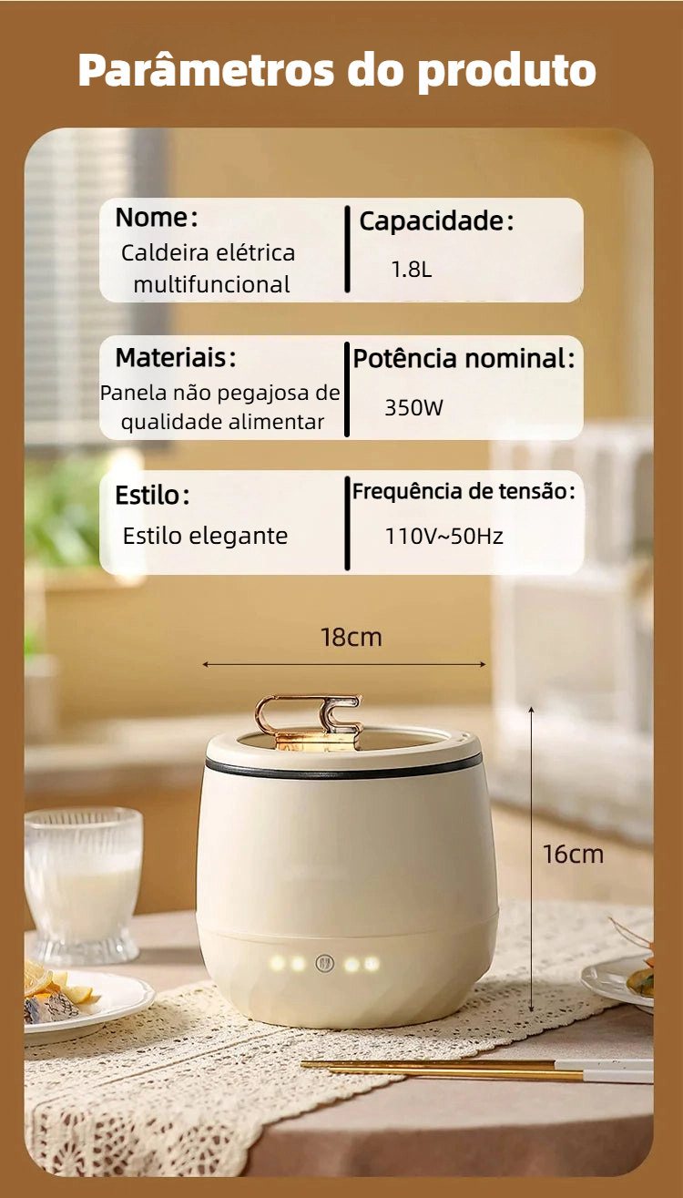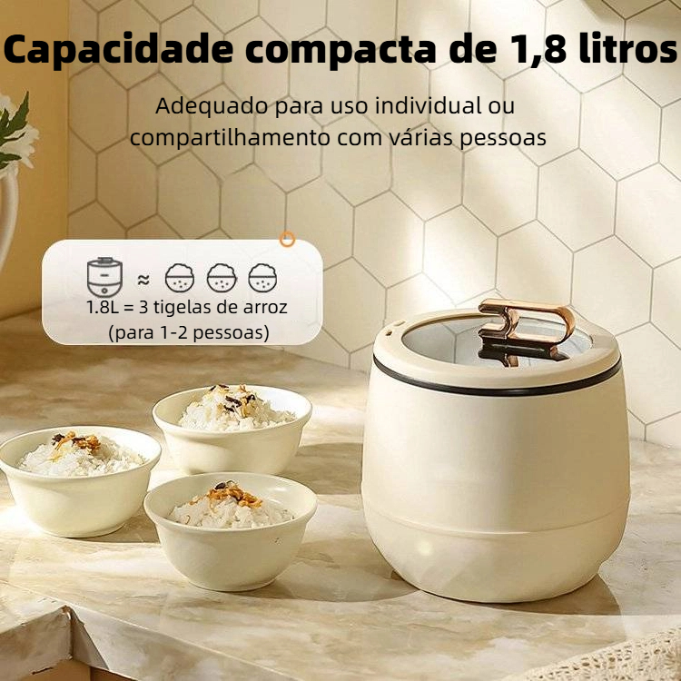 Com uma capacidade de 1,8 litros, é ideal para uso individual. Isso significa que você pode cozinhar com apenas uma ou duas pessoas de forma rápida e fácil.