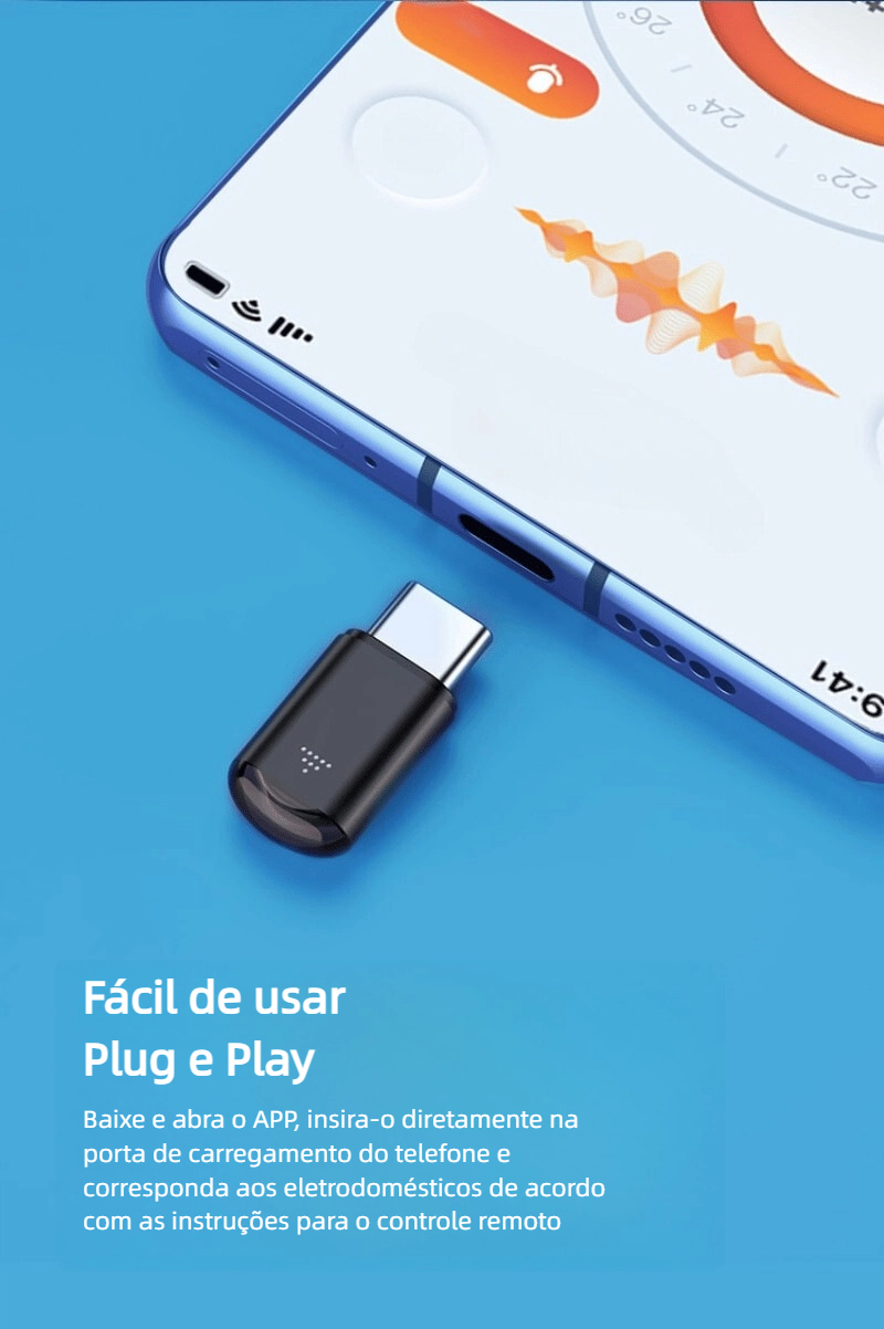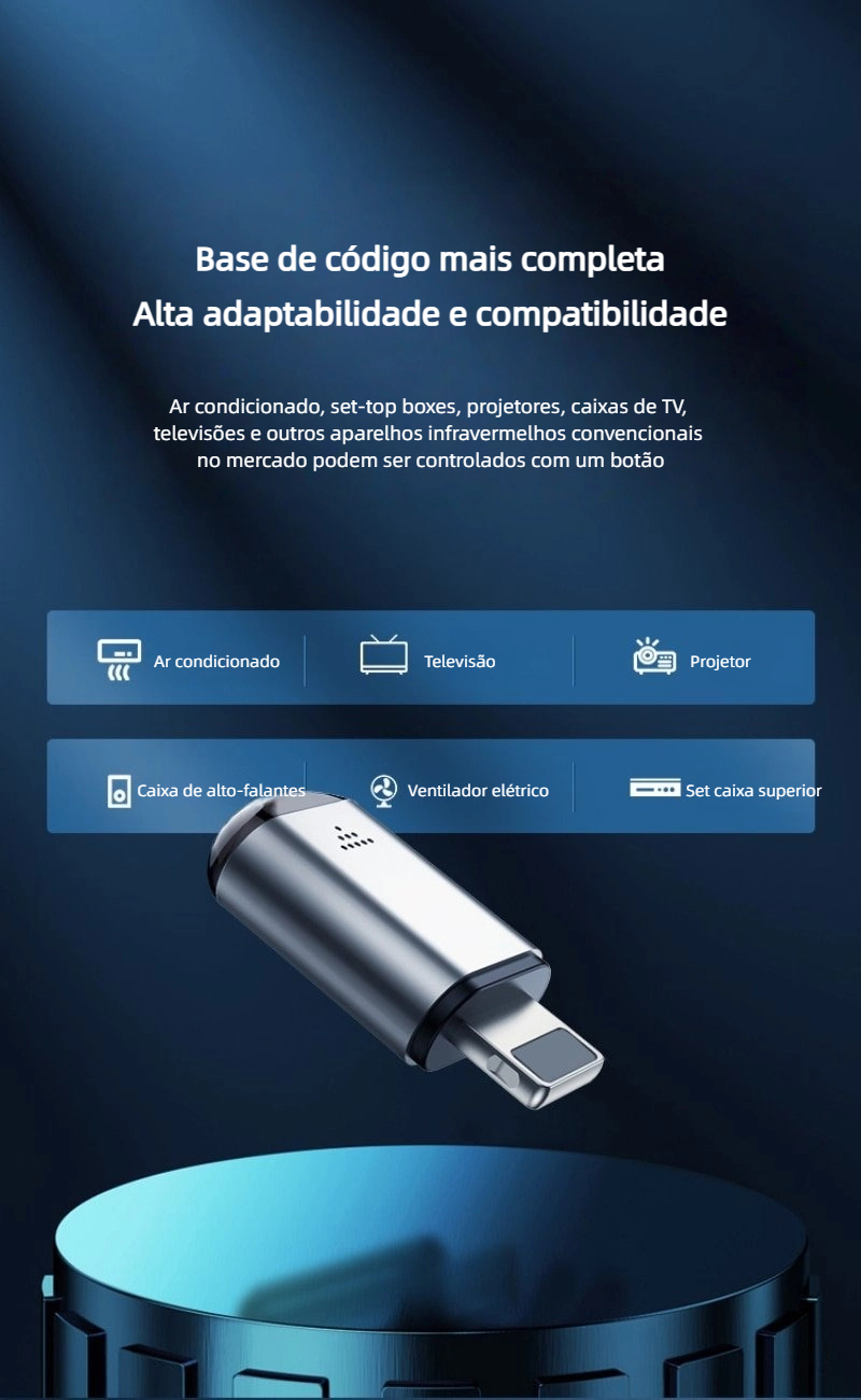 - Ar condicionado, set-top boxes, projetores, caixas de TV, televisões e outros aparelhos infravermelhos convencionais no mercado podem ser controlados com um botão