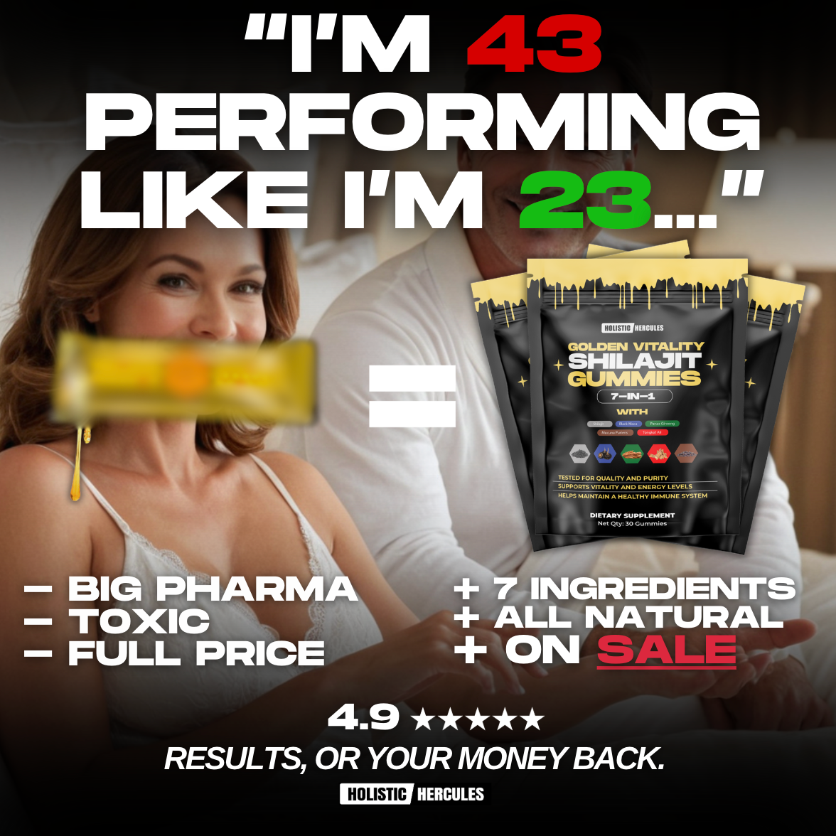 Packed with Shilajit, Tongkat Ali & Maca—proven to enhance size, stamina & satisfaction. One gummy is all it takes.
