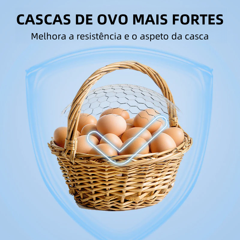 QUALIDADE MELHORADA DOS OVOS : Fortalece a formação da casca, proporcionando cascas mais firmes e lisas. Melhora a aparência dos ovos, com um aspecto mais vermelho e brilhante, ao mesmo tempo que aumenta o peso médio dos ovos e reduz a formação de ovos moles ou deformados.