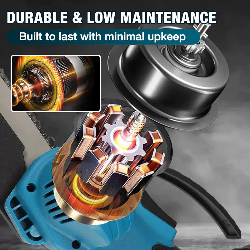DURABLE AND LOW MAINTENANCE - With hardened tungsten steel guide bars and a brushless motor, this chainsaw is wear-resistant and will last 8-12 years without needing to replace the carbon brushes, reducing maintenance.