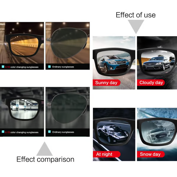 【NO MATTER DAY OR NIGHT, IT WORKS WELL】Our sunglasses are made of special photochromic polarized lenses. When driving at night or into a dark environment, the lenses are lightcolored transparent to enhancing the visibility while effectively reducing the glare. During the daytime, it can effectively filter the strong light, enhance the visual sharpness, reduce eyes fatigue, and keep the eyes always in the most comfortable state of outdoor activities.