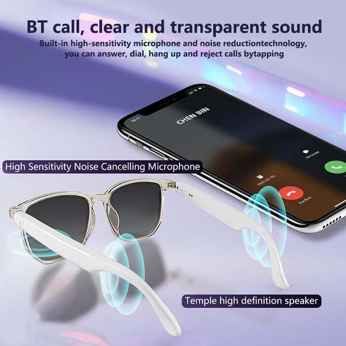The smart glasses have built-in Mic and speakers. You can go hands-free when taking calls thanks to a discreet omnidirectional mic built into its frame or enjoy your music.