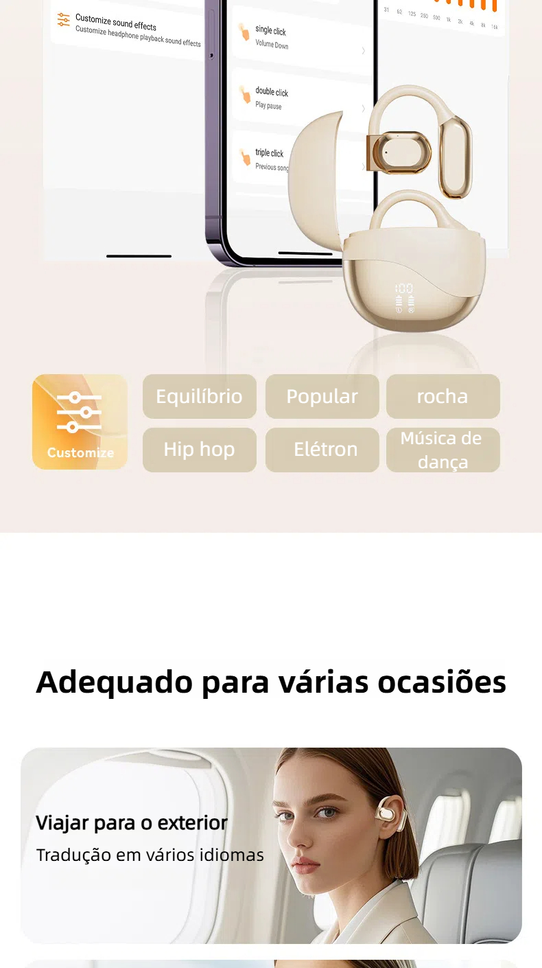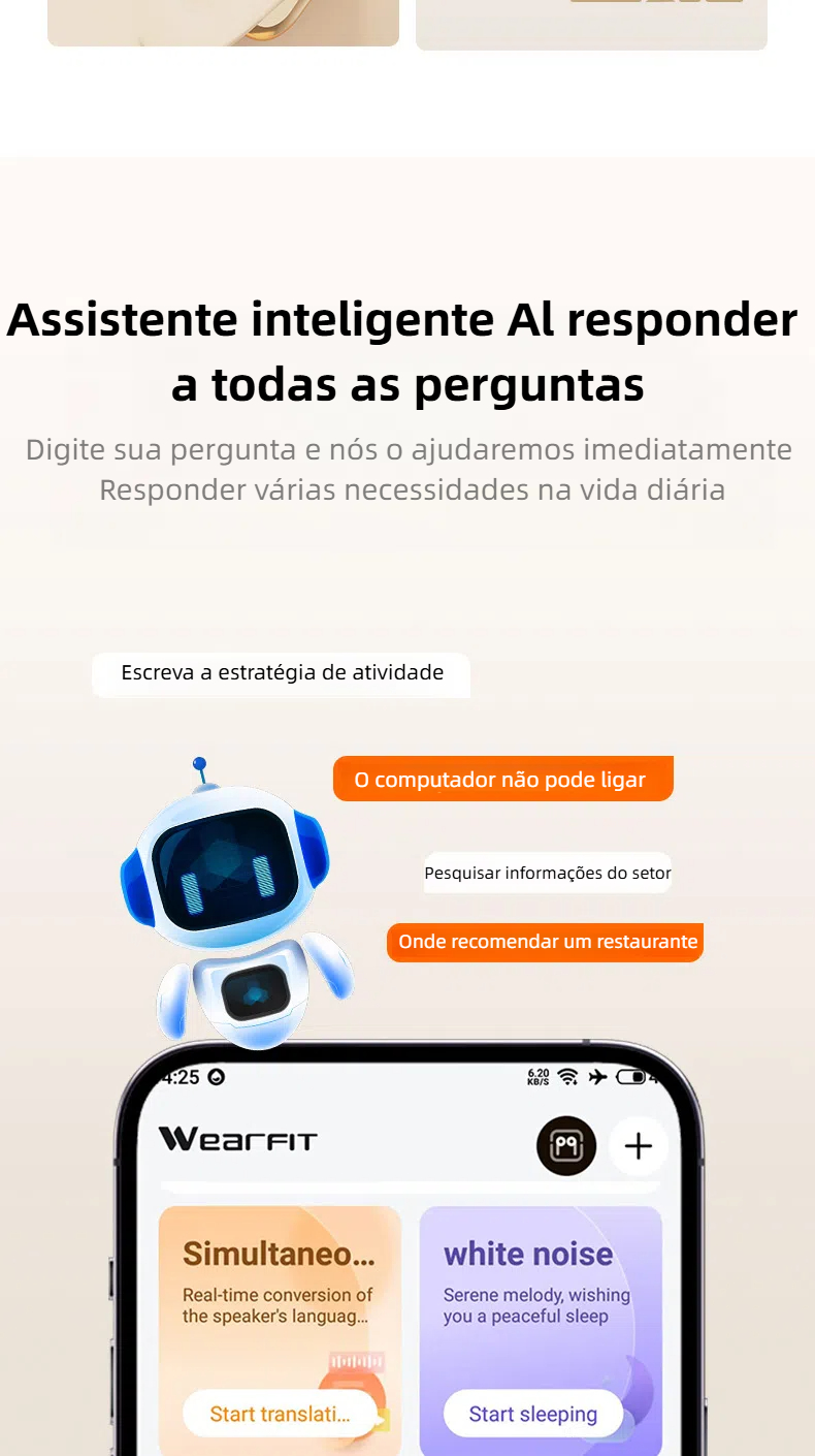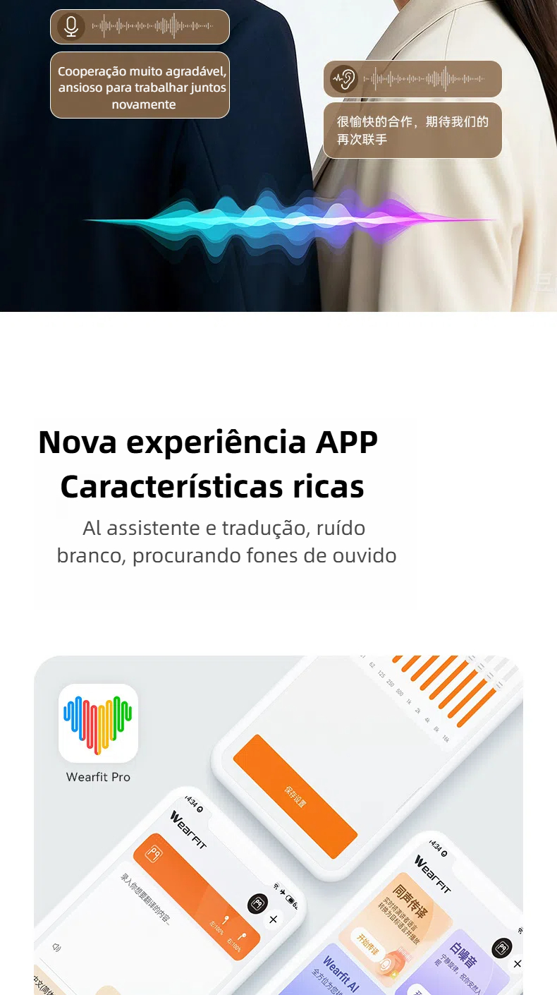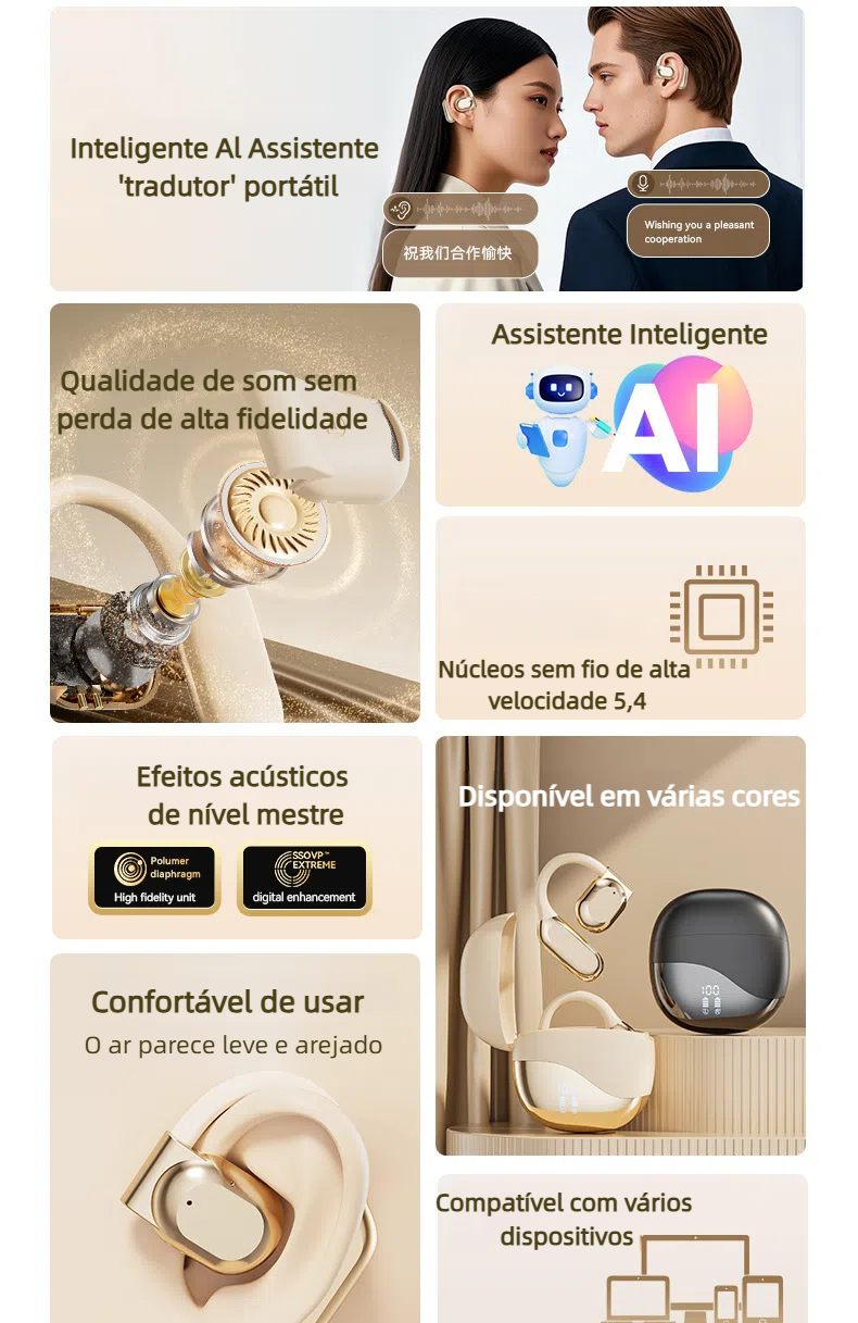 AI-M62 fone de ouvido Bluetooth de tradução inteligente