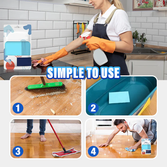 EASY TO USE AND LASTING RESULTS – These multi-purpose floor cleaning wipes are incredibly easy to use. Simply dissolve one wipe in water, soak a mop in the solution, and then mop the floor. Despite their simplicity, the stain removal effect is long-lasting. After use, there's no need to mop frequently – your floor will remain clean and shiny for a long time.
