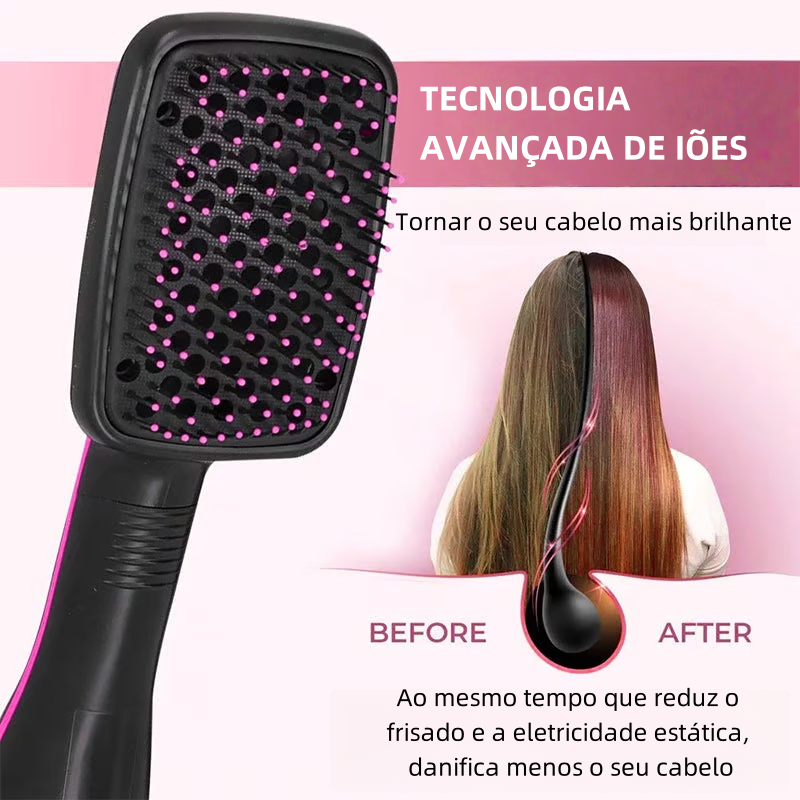 O design 2 em 1 seca e alisa o cabelo em simultâneo, o pente da escova do secador de cabelo pode modelar o cabelo em metade do tempo e reduzir os danos causados pelo calor. Perfeito para manhãs atarefadas