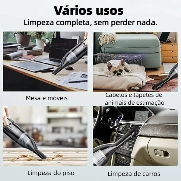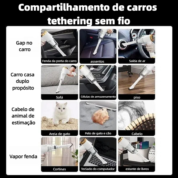 【Amplo uso】 Aspirador de carro pode ser usado como um soprador de limpeza de computador, limpeza de laptop, aspirador de mesa, aspirador de mão para carro, piano, casa de animais de estimação, limpeza de mesa de escritório, etc. Dois estilos de cabeça para todos os tipos de lixo e limpeza profunda.